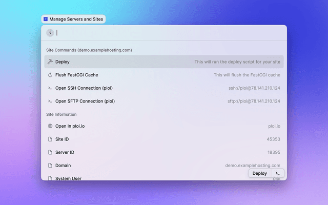 A Raycast plugin for managing your servers & sites by Ploi.