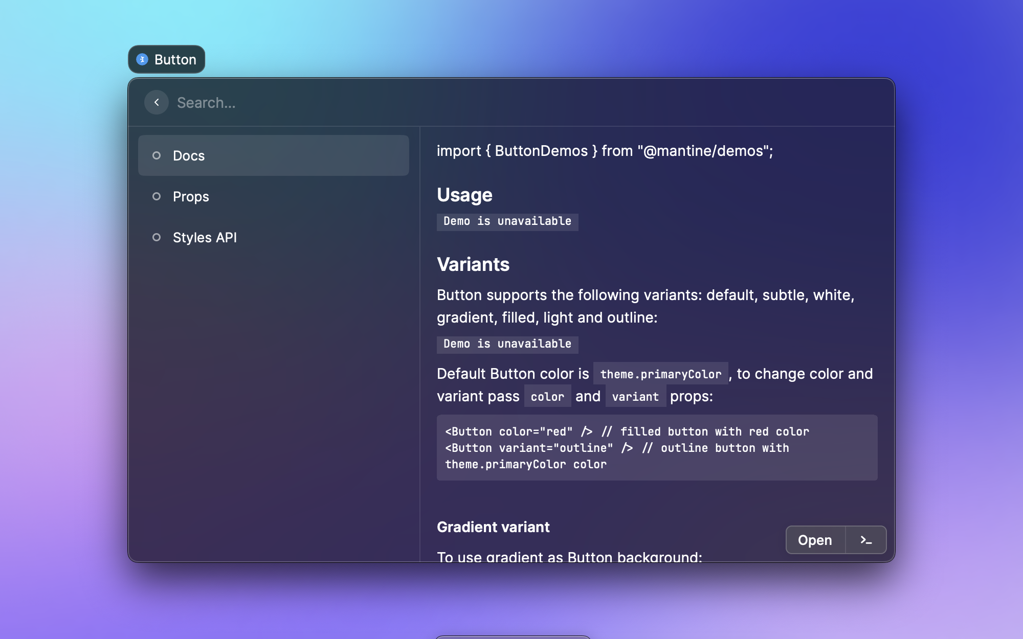 Search documentation for Mantine directly from Raycast