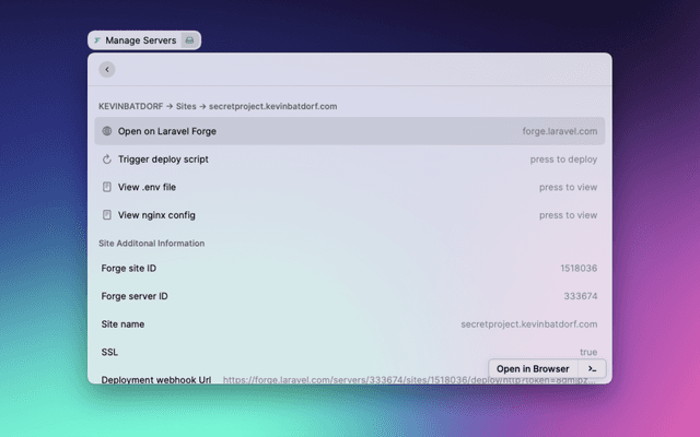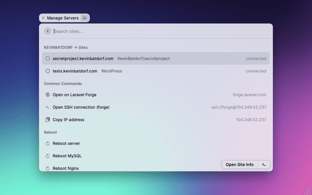 Source repo: https://github.com/KevinBatdorf/laravel-forge-raycast
