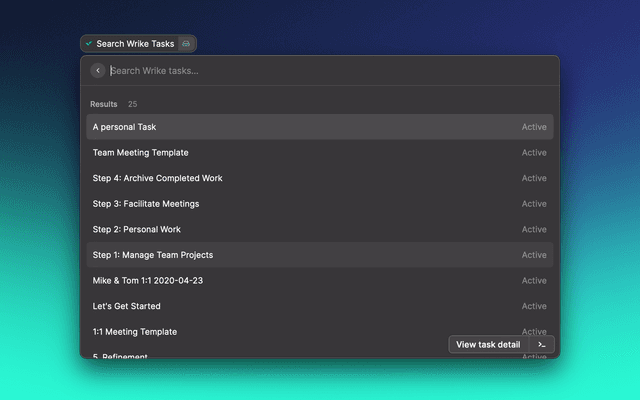 Allows you to search for Wrike tasks from Raycast