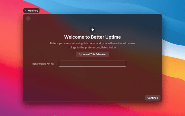 In order to make use of this extension, you'll need to enter the API key available within the Better Uptime dashboard.