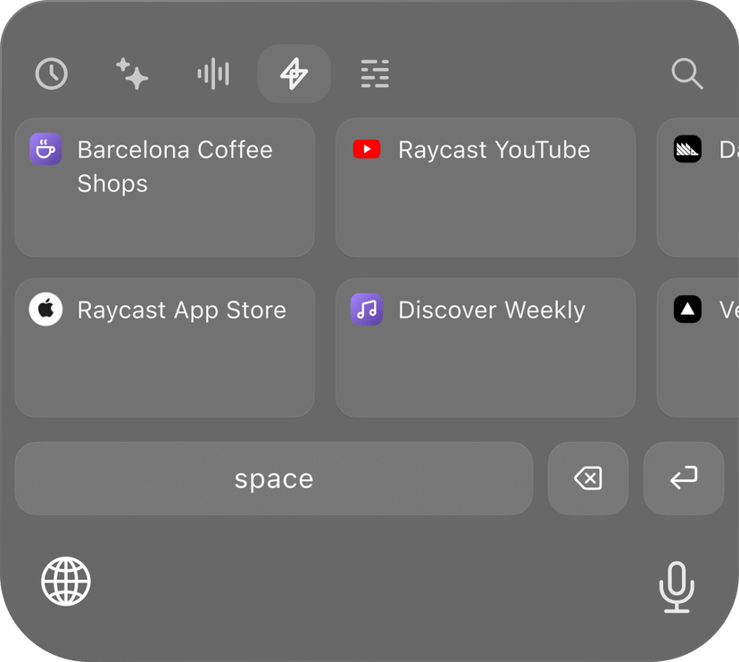 Designed to work well beyond the app icon. Raycast is integrated into many iOS features.