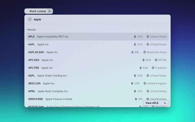 Retrieves stock information from the alphavantage API. Get a free API Key from https://www.alphavantage.co/support/#api-key or a paid one from https://www.alphavantage.co/premium/.