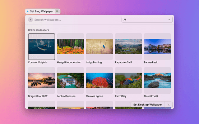 - You can choose the folder where you want to save your Bing wallpapers in Download Directory Preferences, and when you check Auto Download Wallpapers, the latest wallpapers will be saved automatically every time you enter the Set Bing Wallpaper command.