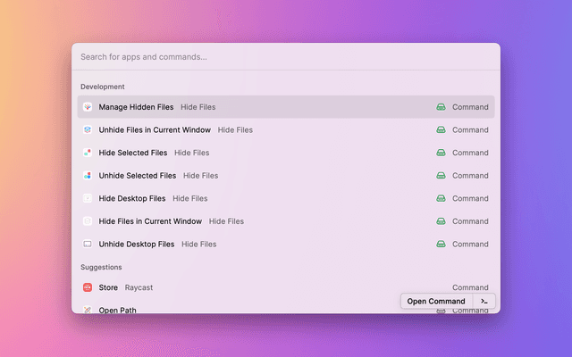 - 🌟🌟🌟But you can always use the shortcut " ⇧+⌘+. " or Raycast build-in Toggle Hidden Files command to see all system hidden files.