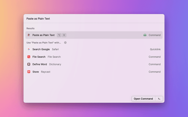 Paste text from the clipboard as plain text.