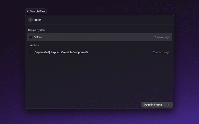 You'll also need a Personal Access Token. To create this, click on your avatar on Figma.com and go to settings. Scroll down to Personal Access Token and create a new one to use with Raycast.