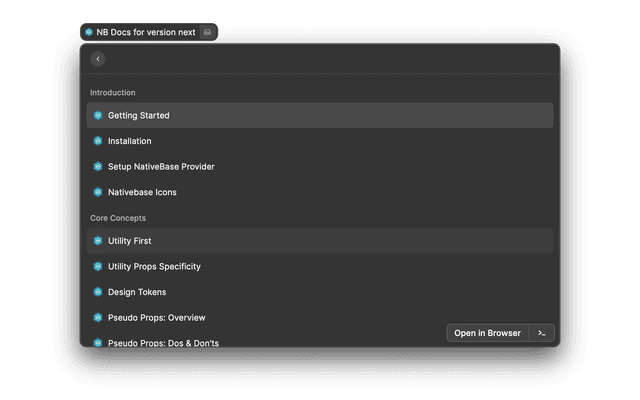 This extensions helps you to search Nativebase documentations by specific versions.